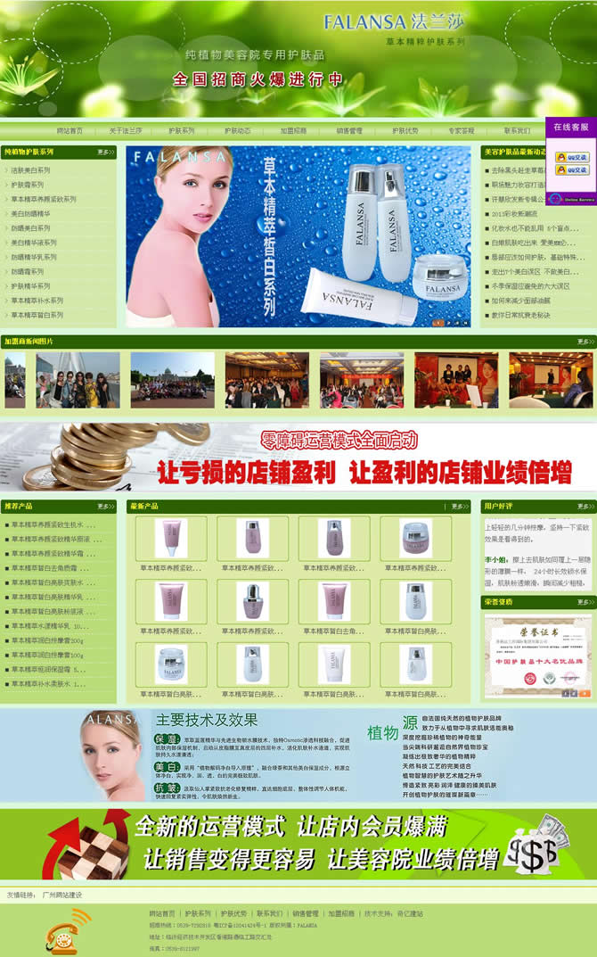 法蘭莎深植本土, 經(jīng)過(guò)長(zhǎng)期研究,特別針對(duì)東方女性膚質(zhì)特 點(diǎn),開發(fā)出不同系列的產(chǎn)品,能更好的起 到美白、保濕、抗皺等功效。