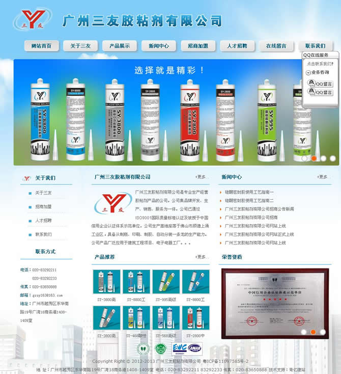 廣州三友膠粘劑有限公司是專業(yè)生產(chǎn)經(jīng)營膠粘劑產(chǎn)品的公司。公司集品牌開發(fā)、生產(chǎn)、銷售、服務(wù)為一體。公司已通過ISO9001國際質(zhì)量標(biāo)準(zhǔn)認(rèn)證及被授予中國信用企業(yè)認(rèn)證體系示范單位。公司生產(chǎn)基地座落于佛山市順德上涌工業(yè)區(qū),具備從制瓶、印刷、制膠、自動分裝一條龍的生產(chǎn)能力。公司產(chǎn)品廣泛應(yīng)用于建筑工程項目、電子電器工廠、門窗玻璃加工廠等民用、商用領(lǐng)域。高品質(zhì)、高性價比、完善的服務(wù),使公司品牌形象與知名度在業(yè)界得到高度的認(rèn)可。