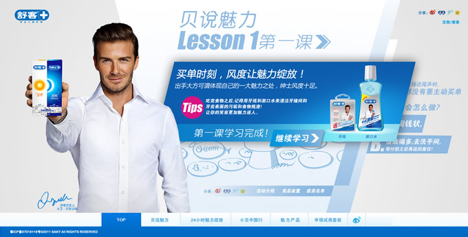 舒客——美容級(jí)口腔護(hù)理品牌,致力于高端美齒護(hù)理市場(chǎng),以創(chuàng)新科技提升美齒標(biāo)準(zhǔn),讓美容不止于妝容,美容從“齒”開(kāi)始!產(chǎn)品包括牙膏類、口腔護(hù)理工具類和兒童護(hù)理類。其中,益早益晚系列牙膏在國(guó)內(nèi)首次提出“早晚分護(hù)”概念;舒客寶貝,是國(guó)內(nèi)首款食品級(jí)的兒童牙膏產(chǎn)品,深受消費(fèi)者的好評(píng)。2011年4月,舒客簽約國(guó)際巨星大衛(wèi)?貝克漢姆為形象代言人。2014年6月,國(guó)際巨星李冰冰正式接力貝克漢姆成為舒客新的形象代言人,引領(lǐng)舒客魅力風(fēng)尚。