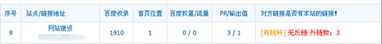 2、權(quán)衡網(wǎng)站的權(quán)重。尋找友鏈最好是自己主動去發(fā)現(xiàn),方法可以通過自己網(wǎng)站的關(guān)鍵詞來搜索,一般能夠排在前面的網(wǎng)站權(quán)重是相對較高的,如果發(fā)現(xiàn)目標(biāo)網(wǎng)站權(quán)重比自己網(wǎng)站要高得多,還可考察目標(biāo)網(wǎng)站上的友鏈站點來選擇,總之,選擇友鏈的最低標(biāo)準(zhǔn)都要是與自身權(quán)重相當(dāng)?shù)木W(wǎng)站。考察一個網(wǎng)站除了看它的權(quán)重以外,網(wǎng)站的收錄,索引,排名趨勢,鏈接數(shù)量等都是參考因素。例如:一個網(wǎng)站的大致情況如下,所要找的網(wǎng)站友鏈數(shù)則最好不超過30個,權(quán)重相當(dāng)?shù)那疤嵯戮鸵词珍浟渴欠褚彩?000左右,其次是看它主關(guān)鍵詞的排名是否靠前,網(wǎng)站內(nèi)容更新頻率以及大體趨勢是否朝好的方向變化。對于新站來說也可將其作為一個判斷依據(jù),千萬不可好高騖遠,要想找到權(quán)重更高的網(wǎng)站來做友鏈,唯一一個方法就是努力提高自身網(wǎng)站權(quán)重。