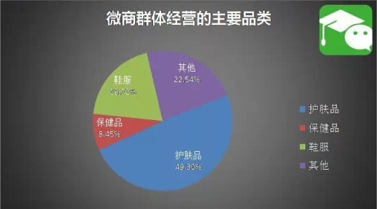 相信讓大伙們感同身受的是朋友圈里被淹沒的化妝品,面膜,保健品等微商廣告,最后導致大家一說到微商,首先想到的就是此類的商品營銷,不得不承認這種潛移默化的觀念若是根深蒂固,再后來的微商也就提不起精神來開拓新的領域了。沒錯,據(jù)不完全統(tǒng)計數(shù)據(jù)顯示(如圖來源于站長網),以上述產品為主的微商確實占據(jù)了大半部分,試想,已經有這么多人去分這些領域的蛋糕了,你再擠進去還能分到什么呢?也許你連蛋糕的影子都看不到。
