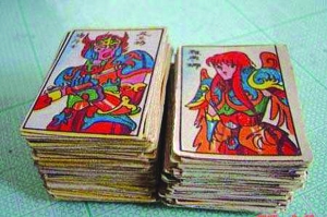 這疊紙牌,有多少個人記得它們呢?幾個人一起出相同數(shù)量的紙牌,拿手扇,用嘴吹,只要翻轉(zhuǎn)過來就是你的了。正面有各種卡通圖案,背面還會有猜謎語,愛上猜謎語,就是因為它